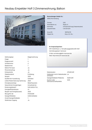 Mehr zum Angebot Neubau Empelder Hof! 3 Zimmerwohnung, Balkon: